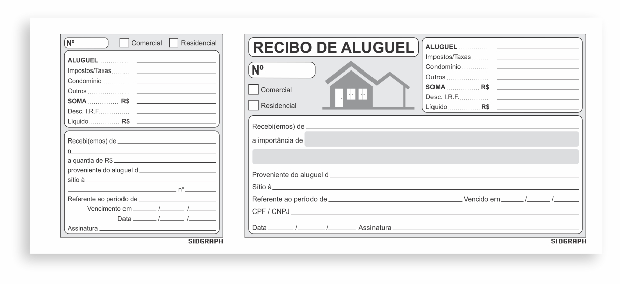 Recibo de Aluguel com canhoto