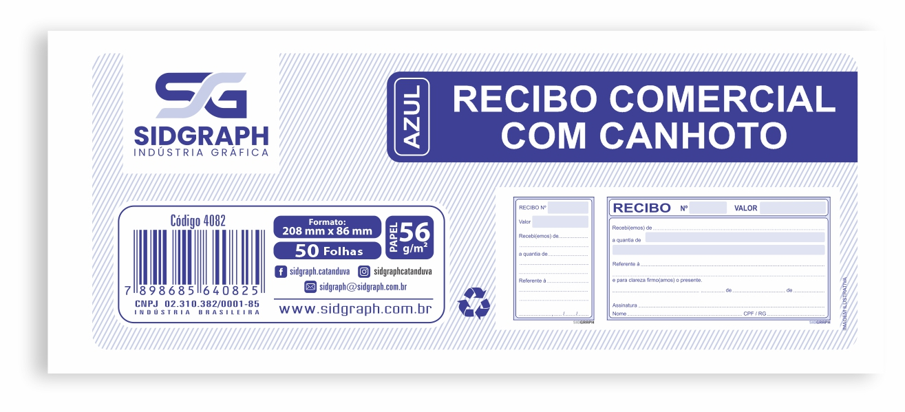 Recibo Comercial com Canhoto - Azul